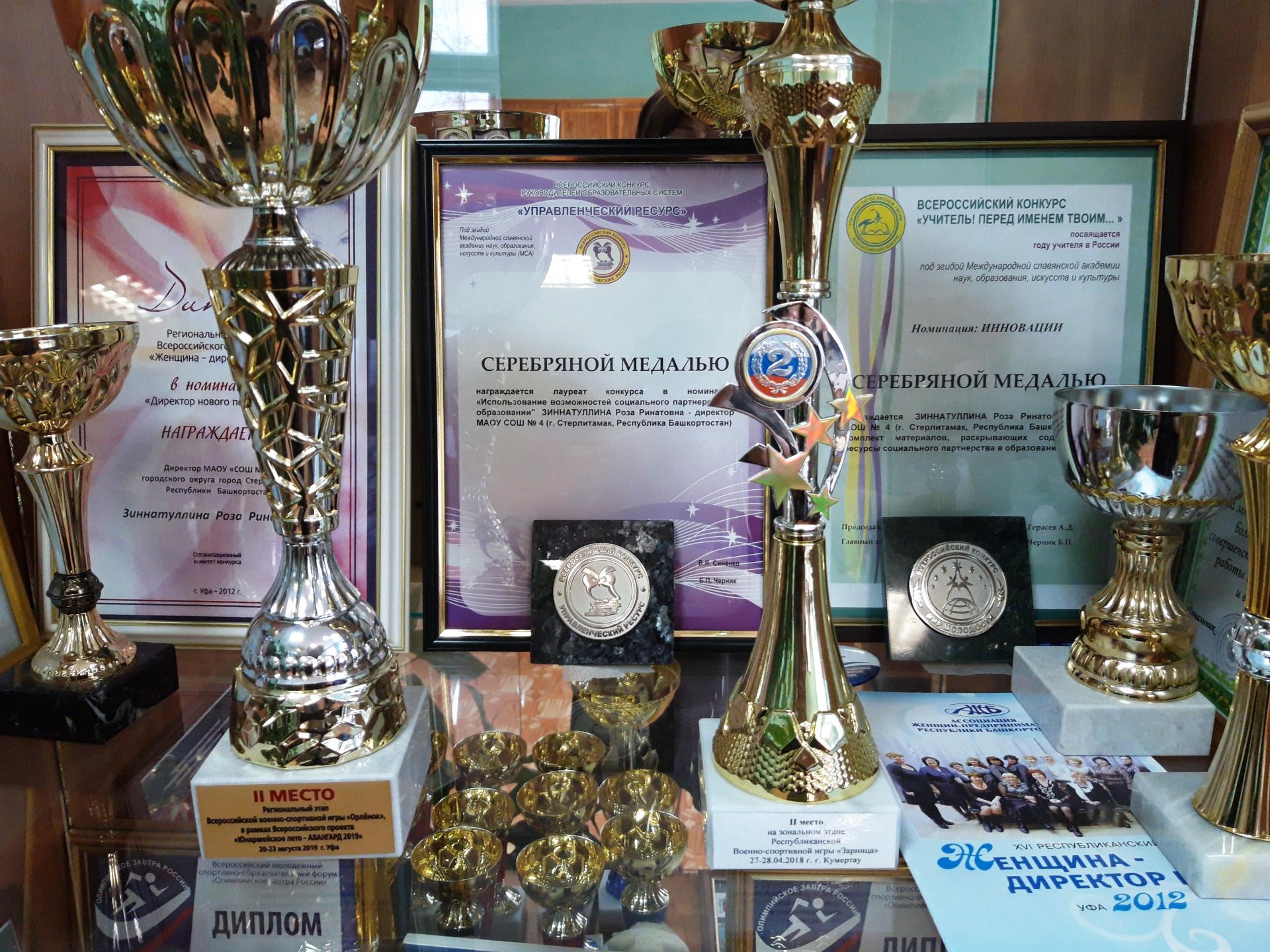 Зиннатуллина Р.Р. - победитель Открытого городского конкурса «Созвездие успешных женщин» (номинация «Женщина и образование»), победитель регионального этапа Всероссийского конкурса «Женщина - директор года» (номинация «Директор нового поколения»), призер Всероссийского конкурса «Управление современной школой», победитель Всероссийской олимпиады руководителей образовательных организаций «Профессиональная компетенция руководителя в сфере образовательного менеджмента». Имеет статьи и публикации. Награждена почетными грамотами и благодарственными письмами МО РБ и УФСБ РФ по РБ, нагрудным знаком РФ «Достояние образования», медалью «За службу образованию» и юбилейной медалью "100 лет образования Республики Башкортостан". Почетный работник общего образования Российской Федерации. Ветеран труда.